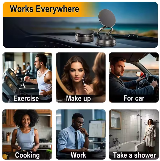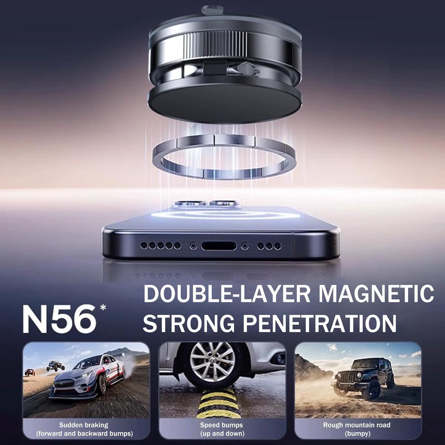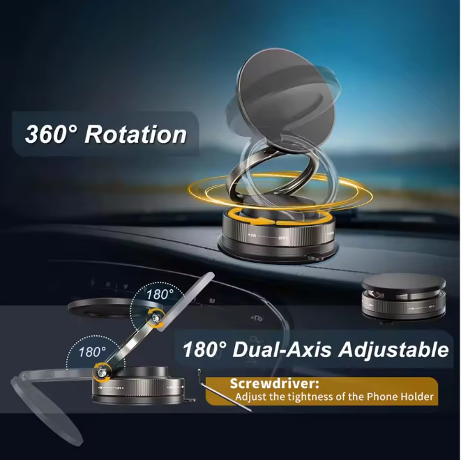 Det motoriserte vakuumfestet skaper et presist undertrykk mot underlaget som låser basen fast, mens selve telefonen hviler mot en MagSafe-kompatibel magnetring. Sammen sørger disse to uavhengige mekanismene for at utstyret sitter støpt under kjøring, samtidig som du bevarer full frihet til å endre synsvinkelen på et brøkdel av et sekund.