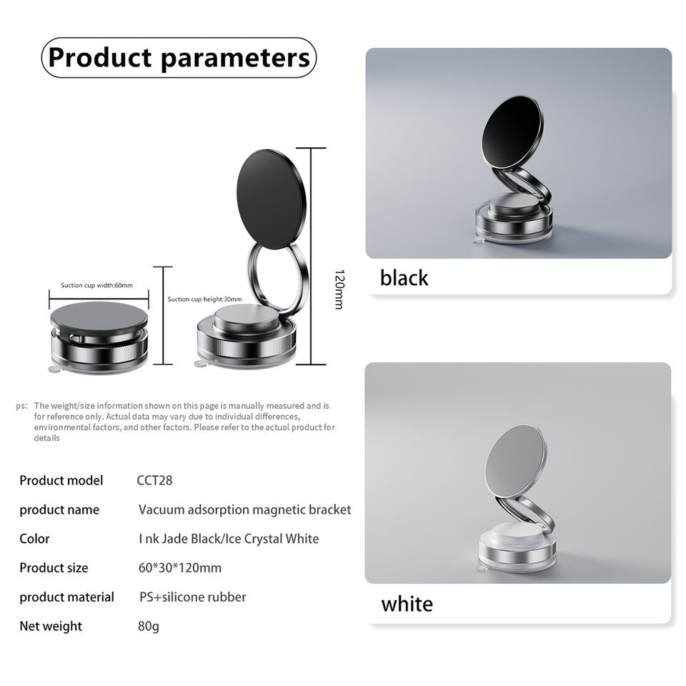 Det kompakte forbindelsen mellom sugekoppen og magneten lar deg vippe og rotere skjermen slik du ønsker. Når det er nødvendig å flytte festet til leiebilen eller et annet kjøretøy, trykker du enkelt på utløserknappen for å frigjøre vakuumet. Dette gir deg en svært anvendelig løsning for en sikker og forutsigbar kjøreopplevelse.